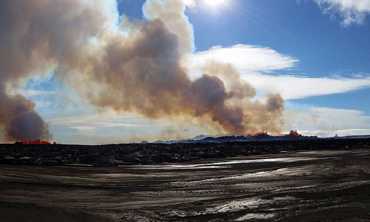A: Wir können deutlich eine Interaktion sehen. Benachbarte Vulkane und tektonische Verwerfungen reagieren auf die veränderte Spannung auf Grund der jetzigen Magmaintrusion. Sowohl an der Askja im Norden als auch am Tungnafellsjökull im Nordwesten von Bardarbunga ist die Seismizität im Moment leicht über der normalen Hintergrundaktivität. Die Warnstufe für das Askjasystem ist derzeit erhöht, weil der momentane Spaltenausbruch näher an der Askja liegt, als am Bardarbunga. Die Intrusion ist jedoch ganz klar von letzterem ausgegangen.