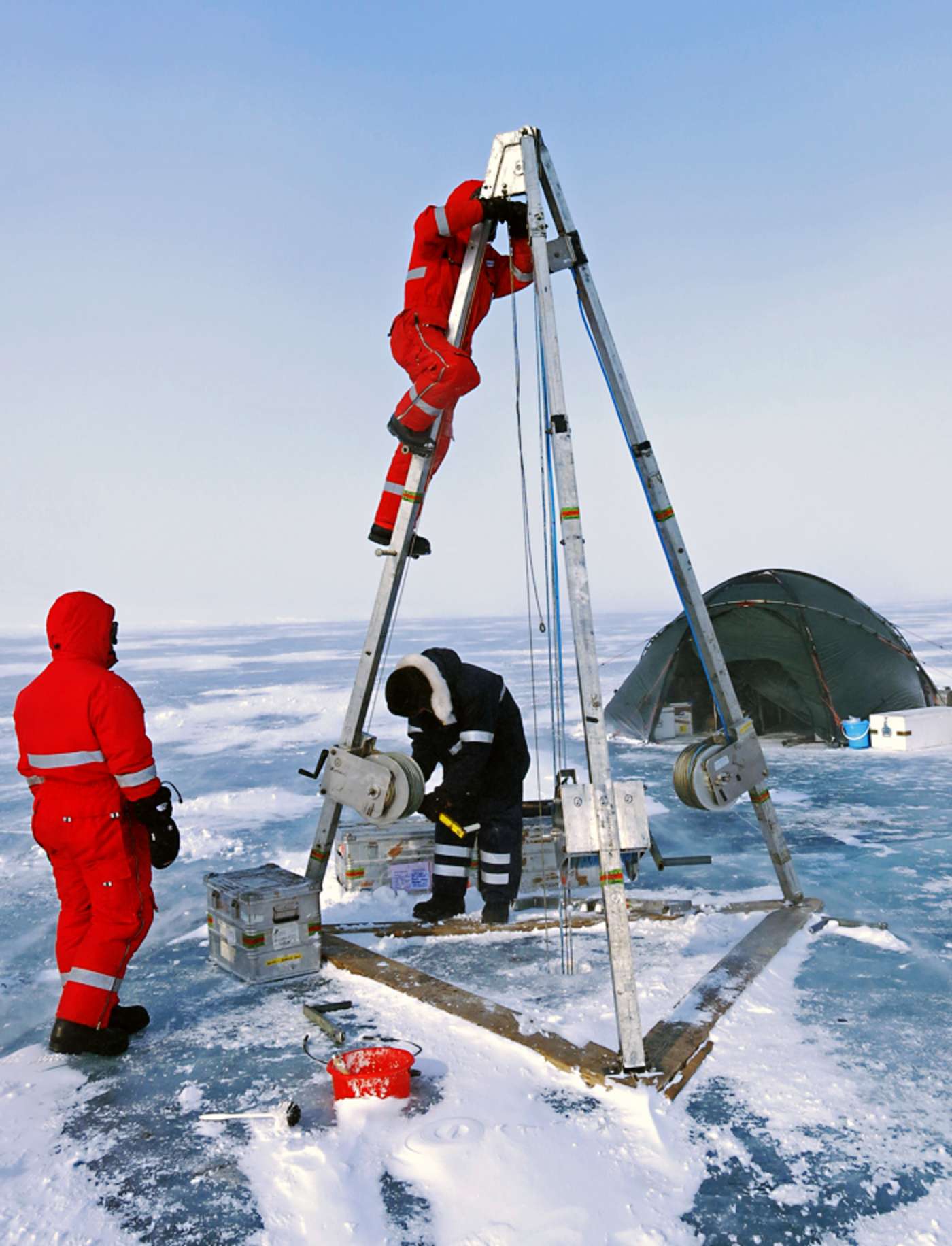 Der Einsatz von Metall-Gestänge bei Temperaturen von bis zu -29 °C und den teils starken Winden in den ersten zwei Wochen war nicht nur anstrengend für den Körper, sondern barg auch besondere technische Herausforderungen. Das unterkühlte Metall des Kolbenlotsystems überzog sich schnell mit einem Eispanzer sobald es für die Kernentnahme wieder aus dem Wasser gezogen wurde. Manchmal steckten dann die Kerne im Kernrohr fest und mussten sorgfältig befreit werden. Gefragt war daher ein ausgeprägtes Improvisationstalent – vielleicht die wichtigste Voraussetzung für erfolgreiche Bohrkampagnen in der Arktis überhaupt.