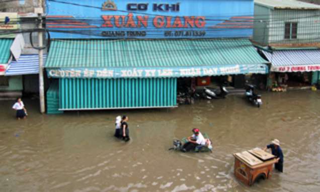 Zu all diesen Treibern und deren Einfluss auf die Hydrologie existieren Studien, die die jeweiligen Faktoren allerdings entweder nur einzeln oder nicht explizit für das Mekong-Delta betrachten. So wurde der Einfluss auf den Sedimenthaushalt im Mekong-Delta weder quantitativ noch explizit für bestimmte Deltabereiche abgeschätzt. Deshalb setzten hier Wissenschaftler vom Deutschen GeoForschungsZentrum, des vietnamesischen Southern Institute of Water Resources Research in Ho Chi Minh City und der Aalto Universität in Helsinki an. Sie führten auf Basis der vorhandenen Studien zu den einzelnen Treibern eine Sensitivitätsanalyse durch, mittels derer die Auswirkungen der Änderungen der Randbedingungen auf die Hydrologie und den Sedimenthaushalt für das Mekong-Delta quantifiziert wurden. Hierzu wurden die minimalen und maximalen Änderungen in den Randbedingungen durch die Einflussfaktoren auf Basis der bestehenden Studien festgelegt. Die Bandbreiten der Änderungen wurden jeweils in fünf Intervalle unterteilt und zunächst einzeln, dann in Kombination für ein quasi-2D hydrodynamisches Modell des Mekong-Deltas als Randbedingungen definiert. Mittels des Modells konnten wichtige Parameter wie maximale Überflutungstiefen, Überflutungsdauern und Sedimentationsraten kleinräumig für das Mekong-Delta quantifiziert werden. Ein Vergleich der mittleren Zustände in der Referenzperiode der Jahre 2000-2010 mit der durch die Szenarien erfasste zukünftige Periode der Jahre 2050-2060 ermöglicht räumlich explizite Aussagen über die zu erwartenden Änderungen im Mekong-Delta. Dies differenziert nach einzelnen und kombinierten Einflussfaktoren. Da die gesamten bekannten Bandbreiten der Änderungen kombiniert wurden, sind alle denkbaren Änderungen und deren Ausmaße nach heutigem Wissenstand erfasst.