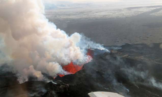 Der Großteil der Vulkanausbrüche auf der Erde findet entlang der Mittelozeanischen Rücken statt. Dabei handelt es sich um ein 70.000 km langes Rift-System in der Mitte der Ozeane, an dem die verschiedenen tektonischen Platten auseinander driften. Entlang einer ein bis zwei Kilometer breiten Zone fließt dort dauerhaft und ruhig sehr SiO2-arme basaltische Lava aus. Auf Island hinterlässt der Mittelatlantische Rücken seine Spuren auch auf dem Festland. Eine große Spalteneruption gab es dort im Jahr 1783 beim Ausbruch des Vulkans Laki. Dieser Vulkanausbruch führte zu gravierenden klimatischen Veränderungen und löste in großen Teilen Europas eine Hungersnot aus.