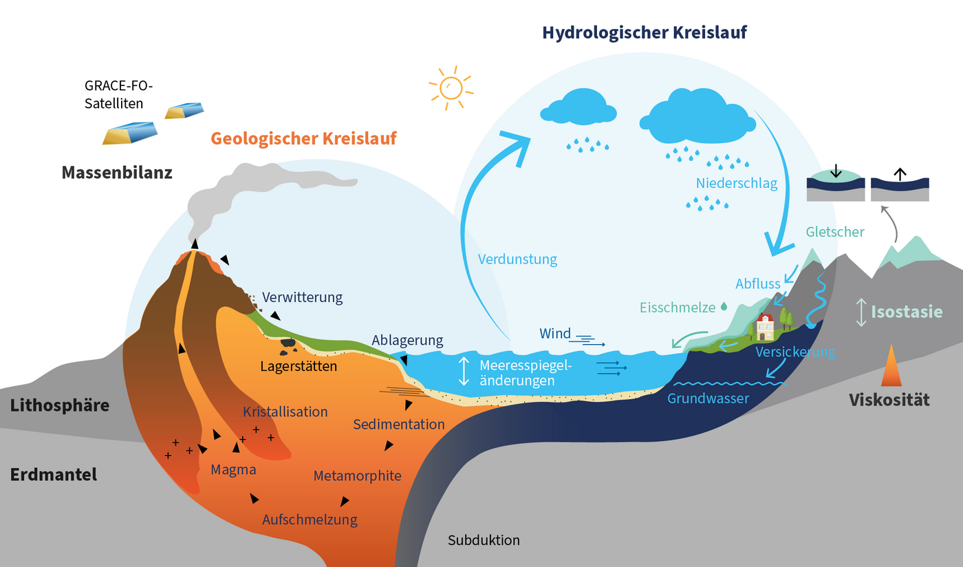 Die hohen Temperaturen im Inneren der Erde sind größtenteils auf den Zerfall radioaktiver Isotope zurückzuführen. Ein weiterer Teil ist Restwärme, die noch von der Entstehung der Erde stammt. Der große Temperaturgradient zwischen dem Erdinneren und der Erdoberfläche führt zu einem Wärmestrom. Da sich diese sogenannte Wärmekonvektion in verformbarem Material vollzieht, kommt es zu Bewegungen. Durch die Material- und damit Dichteunterschiede in den verschiedenen Schichten der Erde ist dieser Prozess sehr komplex. In der Konvektion im Erdmantel liegt der Antrieb für die Bewegung der tektonischen Platten. Lithosphärische Platten "schwimmen" auf der zähflüssigen Asthenosphäre. Hierdurch haben sich die Position und Form der Kontinente und Meere stetig verändert.