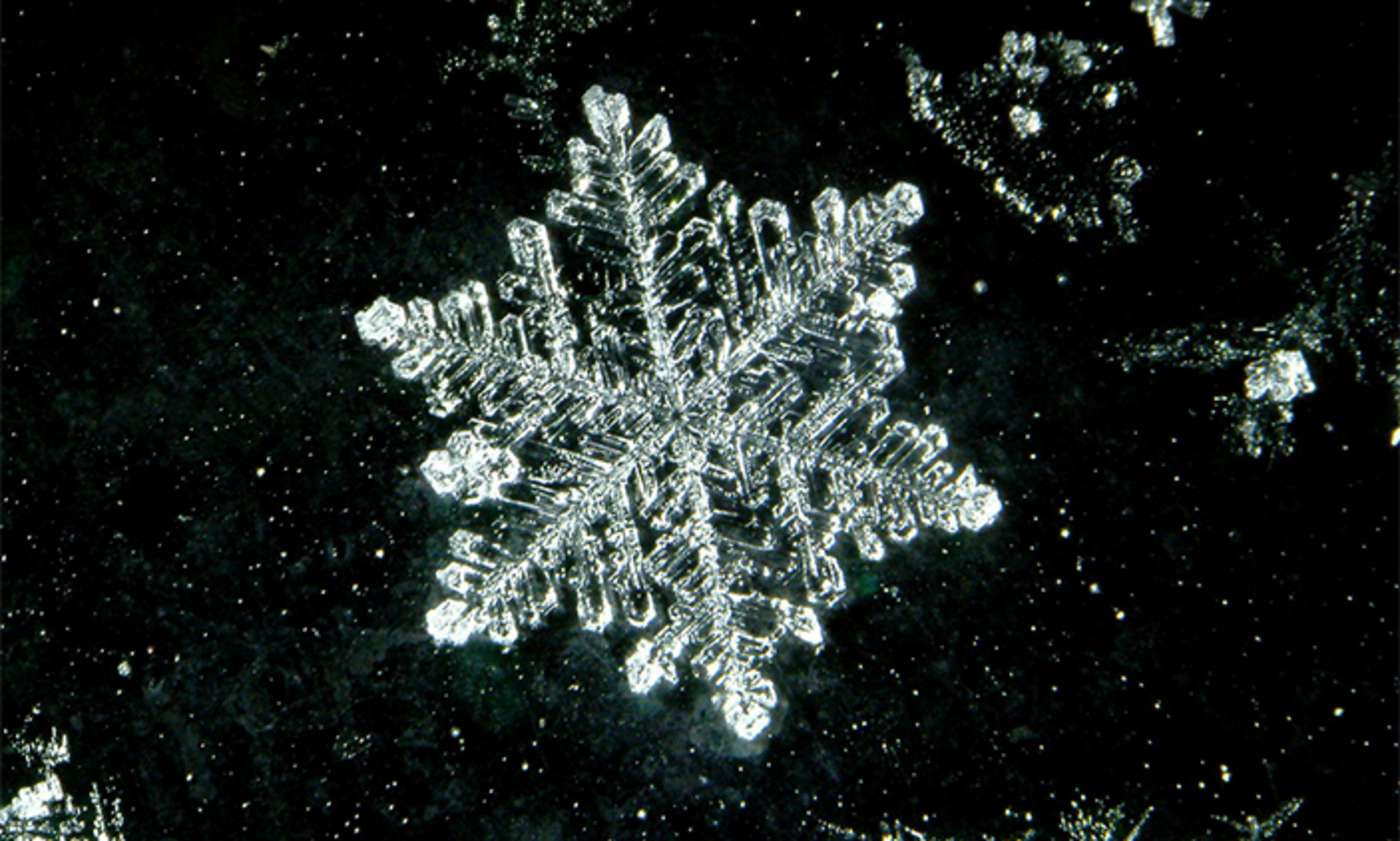 Jede Schneeflocke sieht anders aus und bringt filigrane Strukturen hervor. Allerdings besitzen sie immer eine sechszählige symmetrische Struktur, da sich Wassermoleküle beim Auskristallisieren in einem Winkel von 60 oder 120 Grad anordnen. Eine Schneeflocke enthält einige Millionen winziger Eiskristalle. Welche Form die Eiskristalle annehmen und wie die Schneeflocke am Ende aussieht, das bestimmen die Umgebungstemperatur, die Feuchtigkeitsverhältnisse, der Wind und auch die Eigenschaften des elektromagnetischen Feldes, durch das die Flocke fällt.