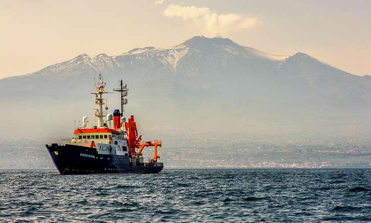 Mit Hilfe von Fernerkundungsmethoden werden Instabilitäten der Ostflanke des Ätnas beobachtet. Wie das hiermit zusammenhängende Störungssystem und die abrutschende Scholle unter Wasser weiterführen, ist allerdings noch wenig bekannt. Um mehr über die aktiven Störungen des Kontinentalhanges zu erfahren, haben Wissenschaftler des GEOMAR, Helmholtz-Zentrum für Ozeanforschung Kiel, in den letzten Wochen mit dem Forschungsschiff Poseidon ein Vermessungsnetz vor der Küste Siziliens ausgebracht.