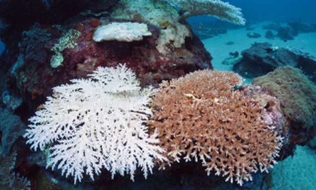 Bei globaler Erwärmung um 2°C werden wahrscheinlich nahezu alle Korallen bleichen und absterben (99 Prozent).