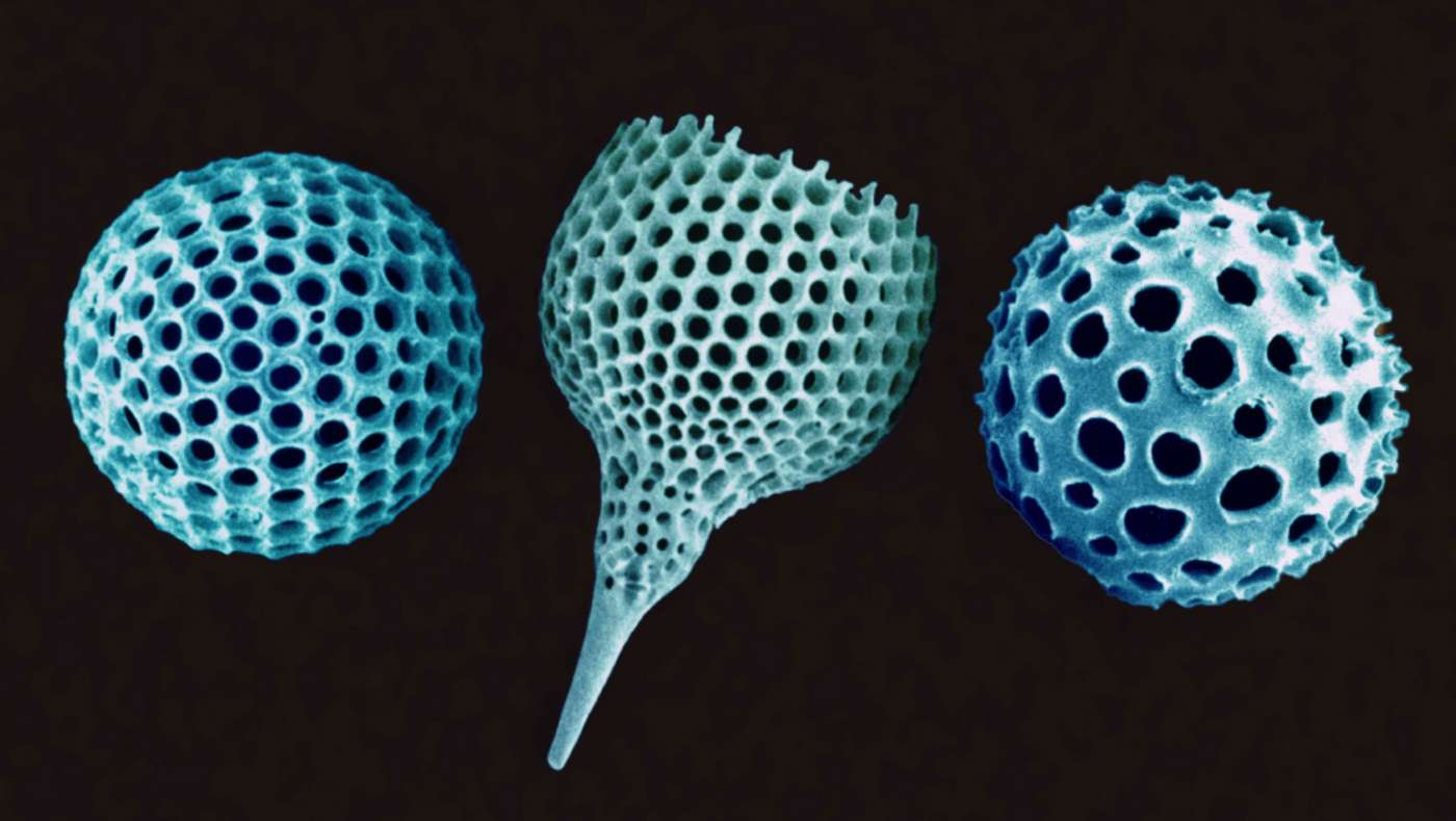 Formschön sind die Einzeller allemal, vielgestaltig und komplex. Selbst mit Eiskristallen könnten sie es aufnehmen. Die Wissenschaftler des GEOMAR Helmholtz Zentrums für Ozeanforschung Kiel untersuchen momentan eine wichtige Gruppe einzelliger Zooplankter im PlanktonID Projekt genau: die Rhizaria. Mehr als 12.000 Arten gehören zu dieser Gruppe. Obwohl die Lebewesen nur aus einer Zelle bestehen, können sie dennoch erstaunlich unterschiedliche Größen aufweisen: von wenigen hundert Mikrometern bis mehreren Zentimeter. Außerdem beherbergen manche von ihnen symbiotische Mikroalgen. Mit deren Hilfe können sie sich nicht nur räuberisch, sondern per Photosynthese auch von Luft und Licht ernähren. Im offenen Ozean erfüllen sie wohl die Rolle der Korallen an den Küsten. Auch wenn die Rhizaria nur knapp 1% der Kohlenstofffixierung durch Photosynthese im tropischen Ozean beitragen, ist dieser Kohlenstoff auch für relativ große Organismen ein gefundenes Fressen. Für Einzeller sind die Rhizaria nämlich ungewöhnlich groß und daher eine Nahrungsgrundlage für große Zooplanktonorganismen und Fische, welche sich nicht direkt von oftmals extrem kleinen, freilebenden Algen ernähren können. Somit bewirken die Rhizaria einen direkten Kohlenstoffeintrag in die oberen Ebenen der ozeanischen Nahrungskette.