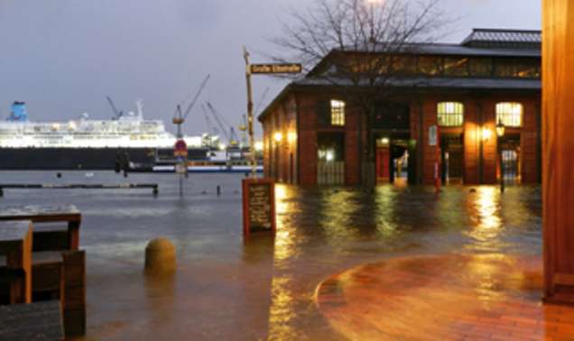 Die Karte zeigt auf der Basis der Sturmflut vom 16. / 17. Februar 1962 die Regionen der deutschen Nordseeküste, die heute durch Küstenschutzmaßnahmen vor Sturmfluten gesichert sind (hellgrüne Gebiete). Zudem können bis Ende des 21. Jahrhunderts voraussichtlich zu schützende Gebiete angezeigt werden. Bis dahin können hohe Sturmfluten, wie beispielsweise die Sturmflut von 16. / 17. Februar 1962, durch den Meeresspiegelanstieg und ein verändertes Windklima bis zu 1,1 m höher auflaufen.