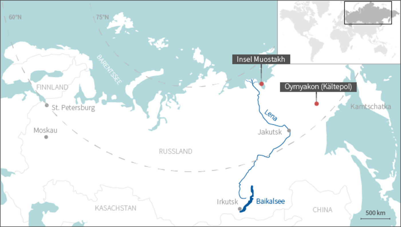 Die Minimaltemperaturen im russischen Oymyakon, dem kältesten Ort (Kältepol) der Nordhemisphäre wurden 1933 mit -68 °C gemessen. Das winterliche Klima wurde der Studie zufolge immer wärmer. Ist damit zu rechnen, dass die Minimaltemperaturen auch tiefer lagen? Wie "eiskalt" waren die russischen Winter vor 7000 Jahren?