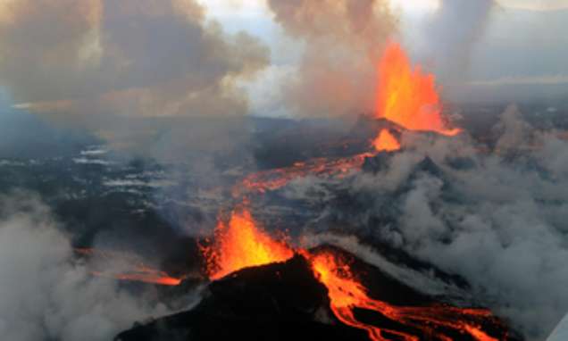 A: Die momentan anhaltende Spalteneruption setzt vergleichsweise starke Mengen von Schwefeldioxid (SO2) frei. In unmittelbarer Umgebung der Ausbruchsstelle werden toxische Konzentrationen erreicht. Unsere Kollegen vor Ort haben sich trotz Gasmasken schon mehrfach zurückziehen müssen. SO2 wirkt ätzend auf Schleimhäute, kann in hohen Konzentrationen Lungen und Bronchien schädigen. Wenn man dem länger ausgesetzt ist, kann Vitamin B12 zerstört werden und damit zu Blutarmut führen.