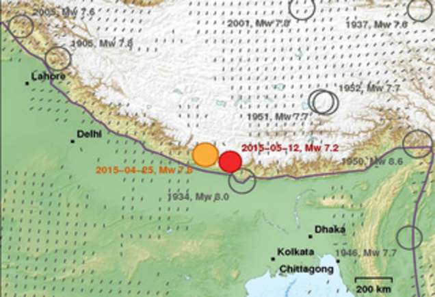 Das Himalaya-Gebirge durchzieht Nepal von West nach Ost. Es entstand durch die Kollision der Indischen mit der Eurasischen Platte vor ungefähr 50 Millionen Jahren (Eozän). Noch heute drängen die beiden Kontinente aufeinander zu, wobei sich Indien auf Eurasien relativ mit ungefähr 4,5 cm/Jahr zubewegt. Begleitet sind diese Prozesse immer wieder durch oftmals sehr starke Erdbeben. Bei den Schäden, die die Beben hervorrufen, bleibt es jedoch selten. Durch die Erderschütterungen werden häufig zusätzlich Hangrutschungen, Felsstürze oder auch Lawinen ausgelöst, was wiederum zur Aufstauung von Flüssen und damit zu Überflutungen führen kann. Zusätzlich zu den unmittelbar durch Erdbeben ausgelösten Dominoeffekten wie Felsstürze, treten oftmals selbst Monate oder Jahre später noch Folgeerscheinungen auf. Durch Starkbeben lockern sich beispielsweise Gesteinsmassen oder es können Klüfte und Risse im Gestein entstehen, wodurch unmittelbar nach dem Erdbeben Erosionsprozesse beschleunigt werden.