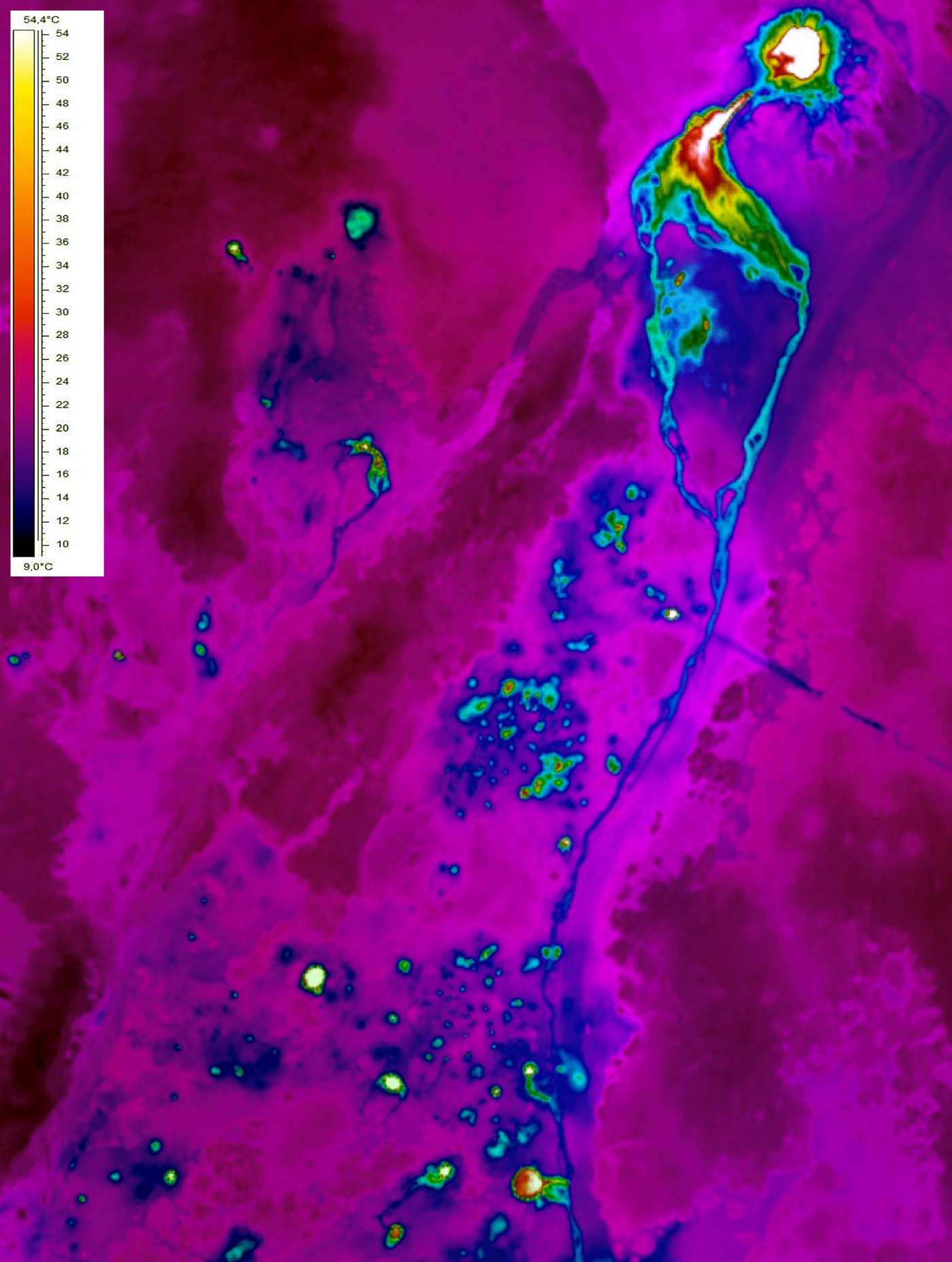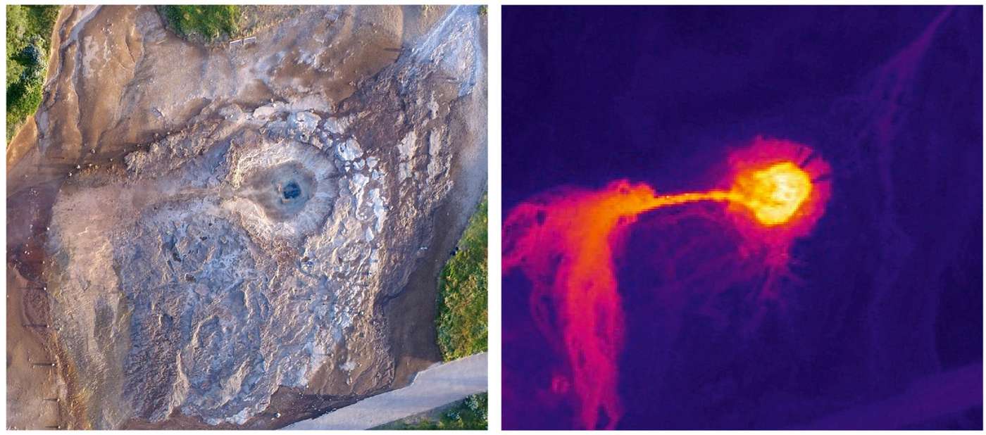 Neue Erkenntnisse, wie die Dynamik von Geysiren und die Wasserflüsse unter der Erdoberfläche verläuft, liefert die Forschungsarbeit von Dr. Thomas Walter am Deutschen GeoForschungsZentrum Potsdam. Gemeinsam mit Kollegen aus Island wurde dabei dort das Geothermalfeld rund um den Geysir Strokkur und den Großen Geysir genauer unter die Lupe genommen, den ältesten bekannten Geysiren der Welt. Mittels einer mit speziellen Infrarotkameras ausgestatteten Forschungsdrohne wurden dabei 364 thermische Spots oder Hitzepunkte in der Umgebung des Geysirs identifiziert. Parallel dazu wurden mit einer Unterwasserkamera erstmals Bilder von den zwei größten Geysiren dort in mehr als 20 Metern Tiefe angefertigt. Aufgrund des Drucks steigt die Temperatur in diesen Tiefen auf über 120 Grad Celsius an. Den Aufnahmen kann man entnehmen, dass der oberflächennahe Bereich der Geysire aus einer 9–12 Meter tiefen Röhre besteht, die sich dann in eine Art engen länglichen Riss verwandelt, der sich mit zunehmender Tiefe von 16 Metern stark verzweigt und in ein kompliziertes Geflecht aus weiteren Rissen und Hohlräumen übergeht. Der Verlauf der Risse ist dabei identisch mit den Hitzepunkten, die mit der Drohne an der Oberfläche erfasst wurden. Die Untersuchungen zeigen, dass die Geysire unterirdisch über das Kanalsystem miteinander verbunden sind. Der Druck des Wassers baut sich in diesem tiefliegenden komplexen Risssystem auf. Kommt es durch Erdbeben zu Verwerfungen innerhalb dieses Systems, können neue Geysire entstehen und andere versiegen.