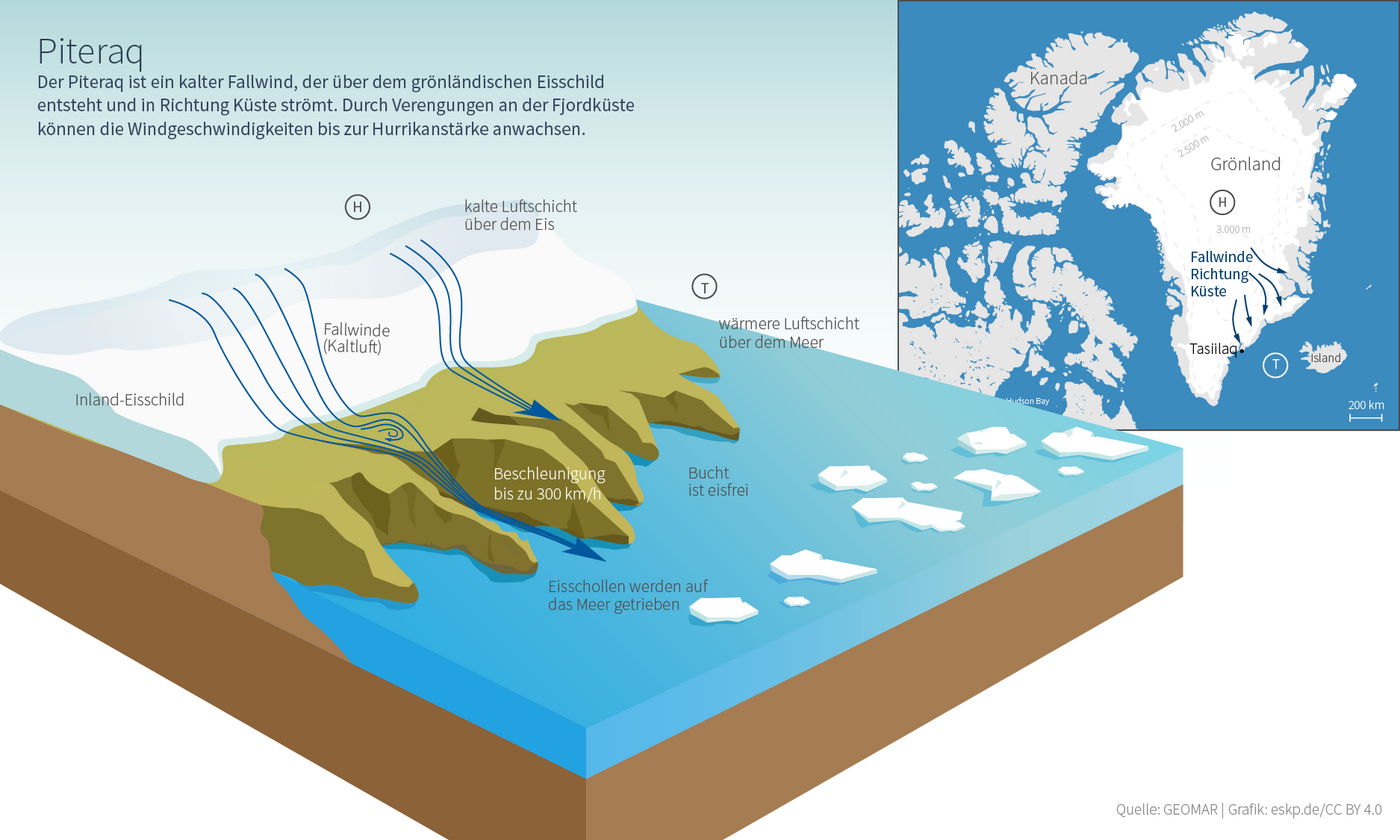 Piteraqs sind eiskalte Fallwinde an der Ostküste Grönlands