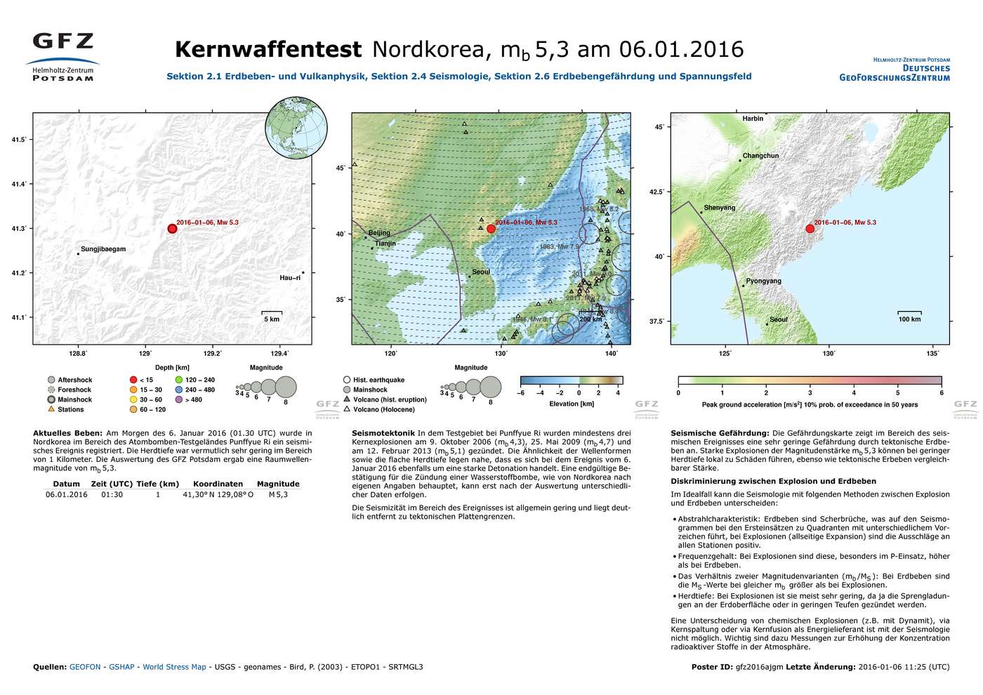 Helmholtz-Zentrum Potsdam, Deutsches GeoForschungsZentrum – GFZ. (2016, 06. Januar). Kernwaffentest Nordkorea [Erdbebenposter, Poster ID: gfz2016ajgm, www.gfz-potsdam.de]. Aufgerufen am 03.05.2021.